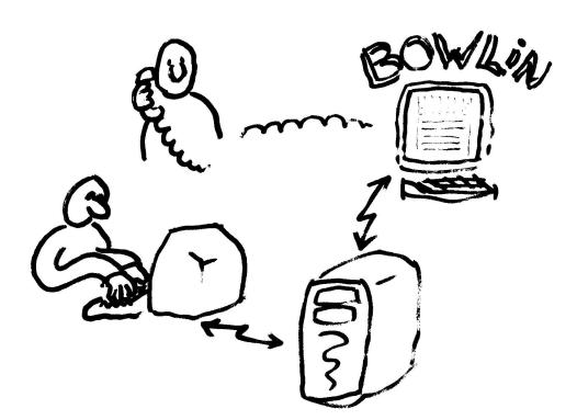 Siivekäs Kotka Oy on kehittänyt yhteistyössä Järvenpään keilahallin kanssa Book'n'Bowl varausjärjestelmän, joka toimii ylläkuvatulla periaatteella. Itse varauspalvelin on Siivekäs Kotka Oy:n tiloissa Helsingissä, ja Järvenpään keilahallin henkilökunta käyttää sitä yleensä kahdelta ADSL-yhteydellä verkkoon kytketyltä työasemalta.